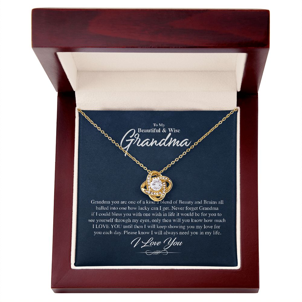 "Grandma, you are one of a kind a blend of Beauty and Brains all balled into one how lucky can I get? Never forget Grandma if I could bless you with one wish in life it would be for you to see yourself through my eyes, only then will you know how much